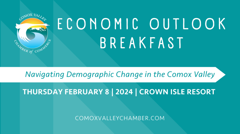 The Comox Valley Chamber of Commerce (CVCC) is once again welcoming the business community to their annual Economic Outlook Breakfast taking place on Thursday, February 8 from 7:30 – 9:30am at the Crown Isle Resort.
